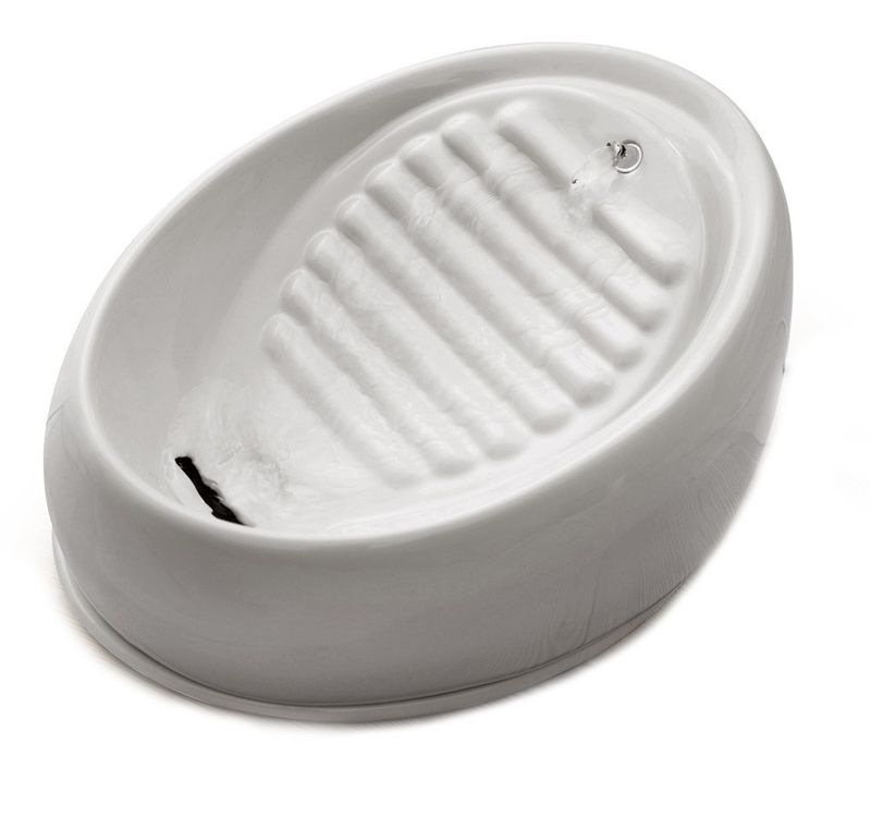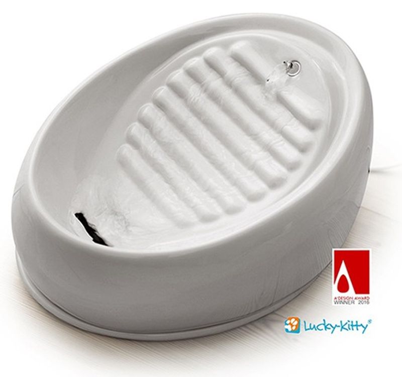 Keramikfontänen är även riktigt hygienisk - det är snabbt och lätt att rengöra den eftersom den är gjord av högbränt porslinsgods med en rundad design (därmed har den inga oåtkomliga skrymslen och vrår). Lucky-Kitty vattenfontän tål maskindisk och används helt utan filter.