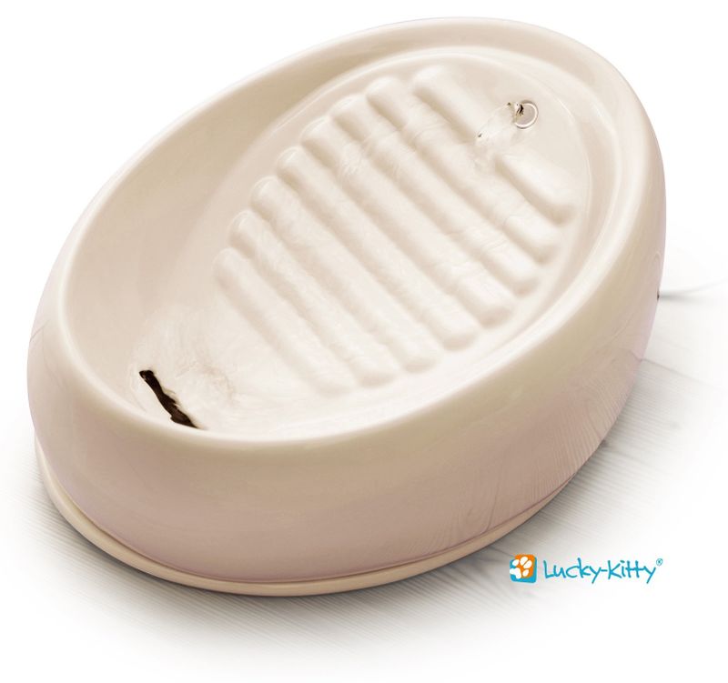 Keramikfontänen är även riktigt hygienisk - det är snabbt och lätt att rengöra den eftersom den är gjord av högbränt porslinsgods med en rundad design (därmed har den inga oåtkomliga skrymslen och vrår). Lucky-Kitty vattenfontän tål maskindisk och används helt utan filter.