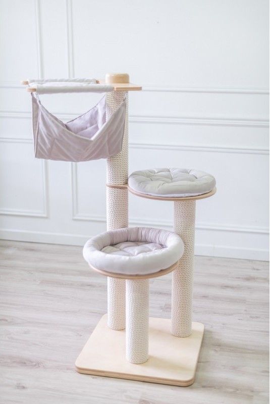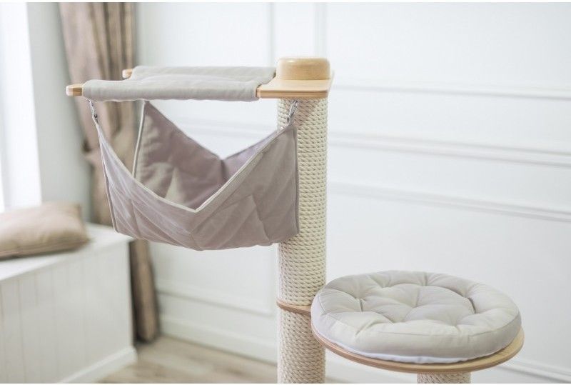 Lagom stor och jättefin klösmöbel med två mysiga hängmattor i toppen. Passar hemmet med flera katter då det finns flera viloplatser i olika höjder. Denna möbel har även en plats där din katt kan sträcka ut sig i hela sin längd (upp till 80 cm!) mot klöspelarna, vilket de flesta katter tycker är så skönt! Luxucat är en jättefin och stilren serie klösmöbler som passar in fint med hemmets inredning.