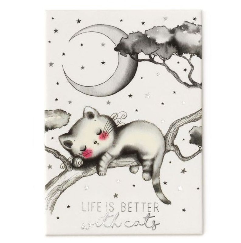 Det här är nog vår allra sötaste kylskåpsmagnet, med motiv av en kissemiss som sover i ett träd. Har ni sett de lockiga morrhåren?