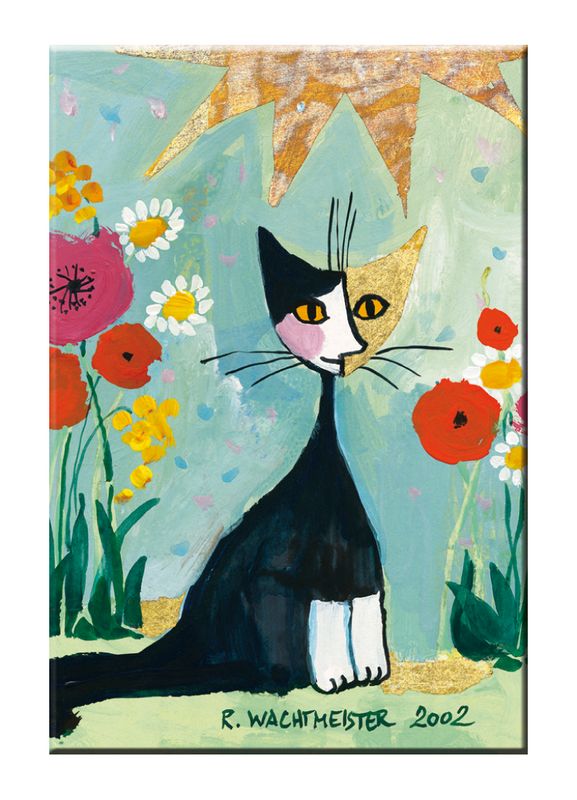 Fin kattmagnet med ett rogivande motiv från konstnären Rosina Wachmeister. Magneten är platt och passar bra på kylskåpet, frysen eller annan platt metallyta för magneter. Pryder väl sin plats i hemmet!