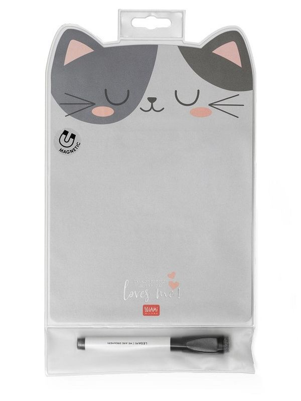 Praktisk whiteboard (inklusive penna) i den fina serien från märket Legami som vi kallar MEOW. Liten whiteboard i behändig storlek att sätta på upp på t ex kylen eller frysen, pennan som följer med är en whiteboard-penna som går att sudda ut och skriva på nytt!