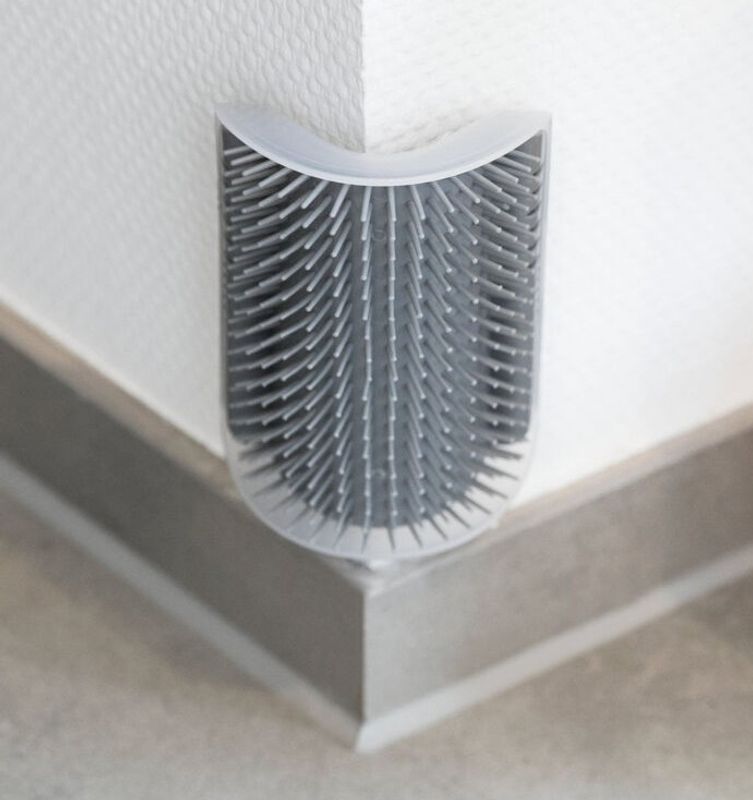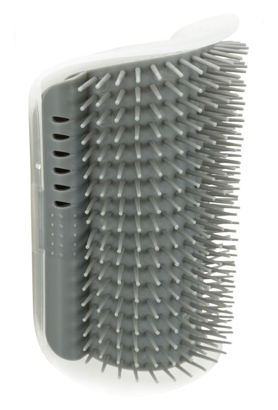 En massageborste till din katt som enkelt kan monteras på en plan yta (t ex en vägg) eller en hörnyta (t ex ett bordsben eller ett vägg-hörn). Massageborsten sätts upp i en lagom höjd för just din katt, så att din katt kan stryka sig och gnugga sig mot borsten såsom den behagar. Liten kattmyntapåse medföljer för att uppmuntra din katt att använda och utforska sin massageborste.