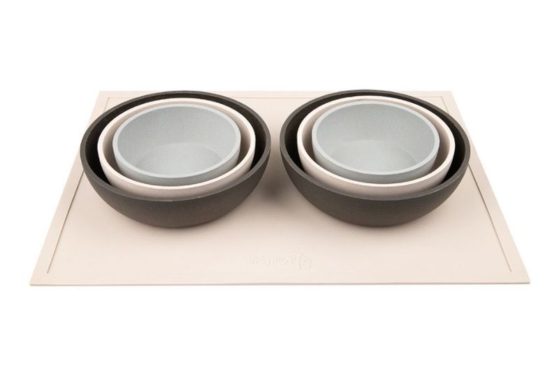 Trendigt matskålsunderlägg gjort av slitstarkt silikon från märket District 70. Passar fint in i det moderna hemmet och håller golvet rent och fint.