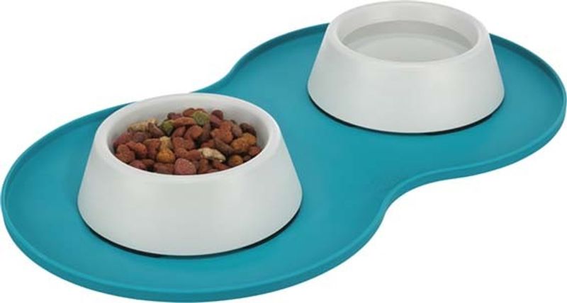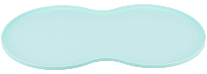 Färgglada underlägg med "midja" som passar matskålar upp till ca 20 cm. En låg kant hindrar det som spills från att rinna ut på golvet. Materialet är greppvänligt silikon och gör att skålarna står stadigt på underlägget.