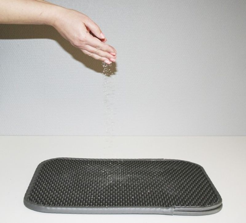 Sedan kan du återvinna den utspillda kattsanden genom att ta upp mattan och hälla tillbaka sanden i kattlådan igen (se produktbild). TrapperMat passar till alla typer av kattsand, kattströ och kattlådor (obs, fungerar inte så bra till stora pellets).