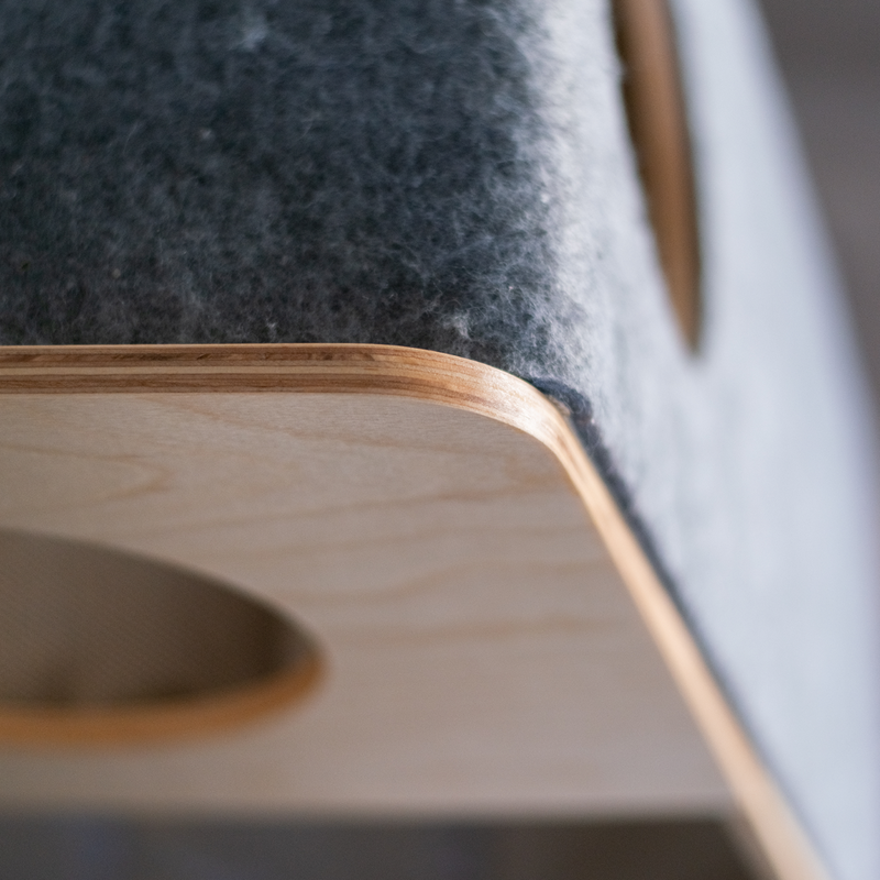 Material: Hållbar nordisk björkplywood, samt designfilt på sidorna