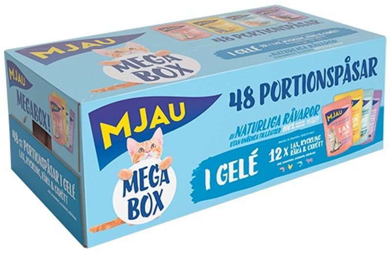 Beskrivning av Mjau Megabox portionspåsar, i gele
