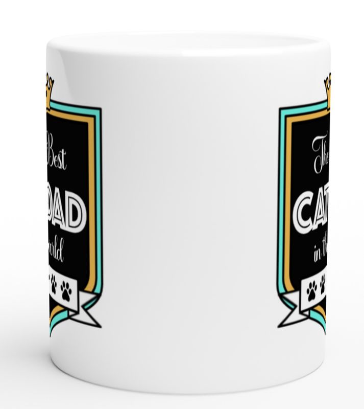 Muggen har samma text på båda sidorna, för att budskapet ska synas ordentligt - texten lyder "The Best CAT DAD in the world".