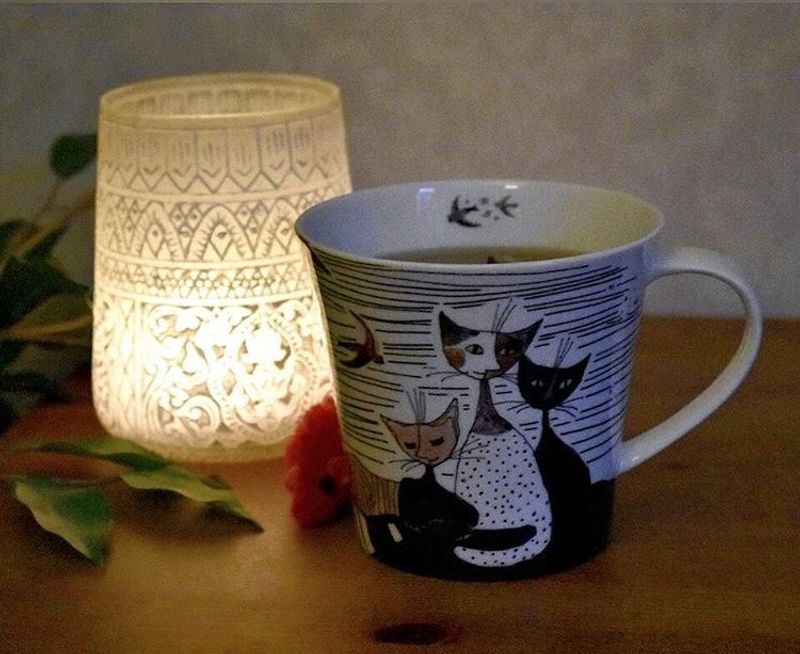 Carota con amici är en fantastiskt fin och kattig kaffemugg eller temugg! Mugg i keramik från konstnären Rosina Wachtmeisters serie Arte Grafica.