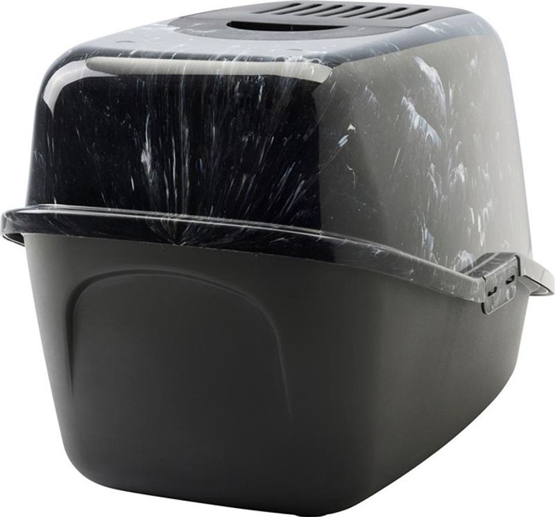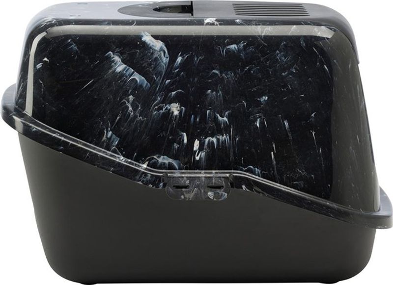 Kattlådan tillverkas med extra hög bakkant för att undvika att ströet kommer in mellan huven och botten när katten skottar runt inuti den. Den högre bakkanten bidrar även i viss mån för att förhindra eventuellt urinläckage (har du en "stå-kissare" kan du kika på en Hopin!)