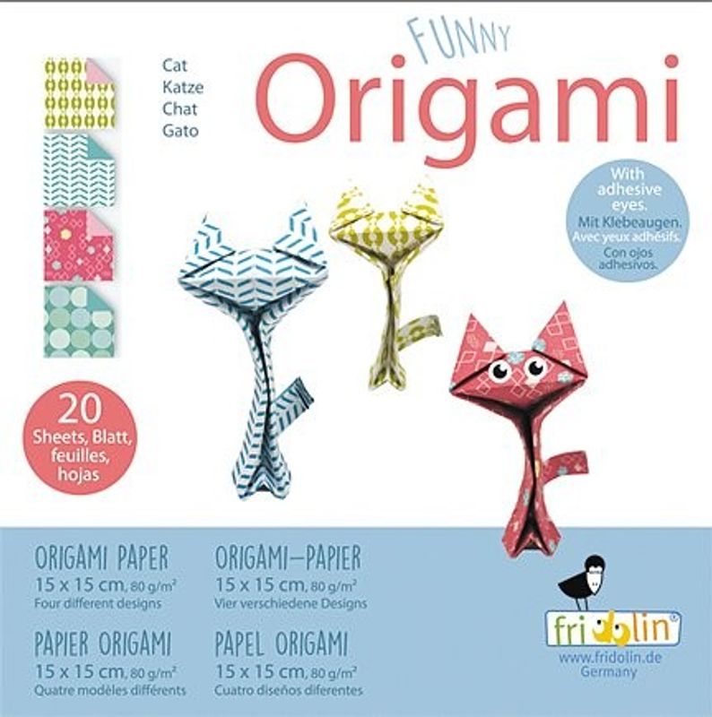 Origamiförpackning med olika mönster för att kunna vika fina katter!