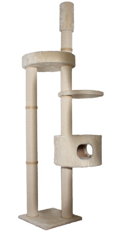 Palads är ett klösträd med många möjligheter för katten! Här finns flera utkiksplatser, en tunna att leka eller sova inuti. Det bästa med Paladset är dock den långa klöspelaren som katten kan rejsa upp i för att busa av sig ordentligt och sträcka ut i sin fulla längd.