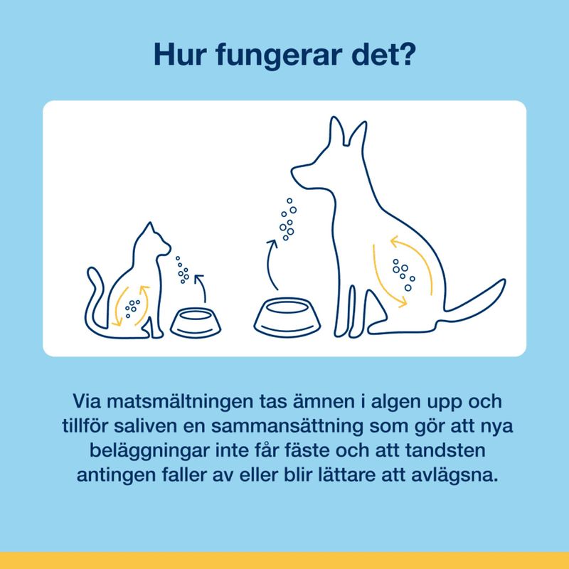 Ge din katt en belöning som både smakar gott och gör nytta! Dental Bites är ett perfekt val för dig som vill ta hand om din katts tandhälsa på ett enkelt sätt i vardagen. Dessa smakrika kattgodisar innehåller den naturliga och aktiva ingrediensen A.N ProDen®, en alg som bevisat hjälper till att motverka plack, tandsten och dålig andedräkt - allt bekräftat i kliniska studier.