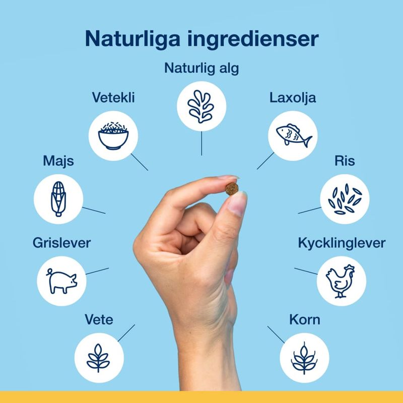 Obs! Katter som har problem med sköldskörteln avråds från denna produkt pga jod-innehållet. Eftersom alg, inklusive vår aktiva ingrediens, har ett naturligt högt jodinnehåll så rekommenderas katter med sköldkörtelproblem att avstå denna produkt.