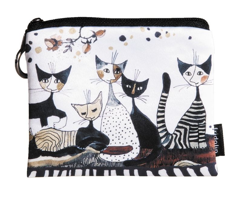 Liten portmonnä i tyg och det fina motivet Cats Sepie från konstnären Rosina Wachtmeister. Dragkedja för att stänga till den.