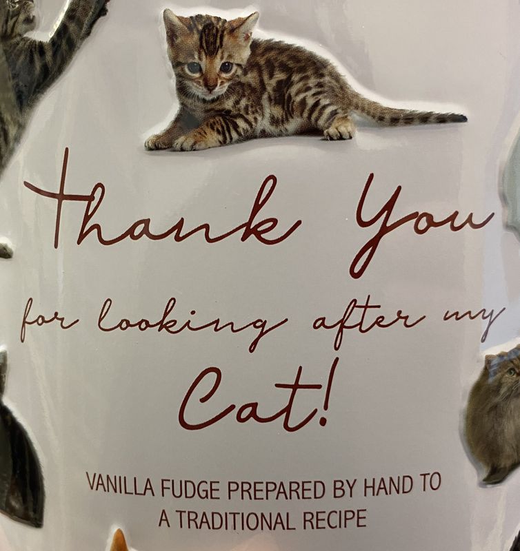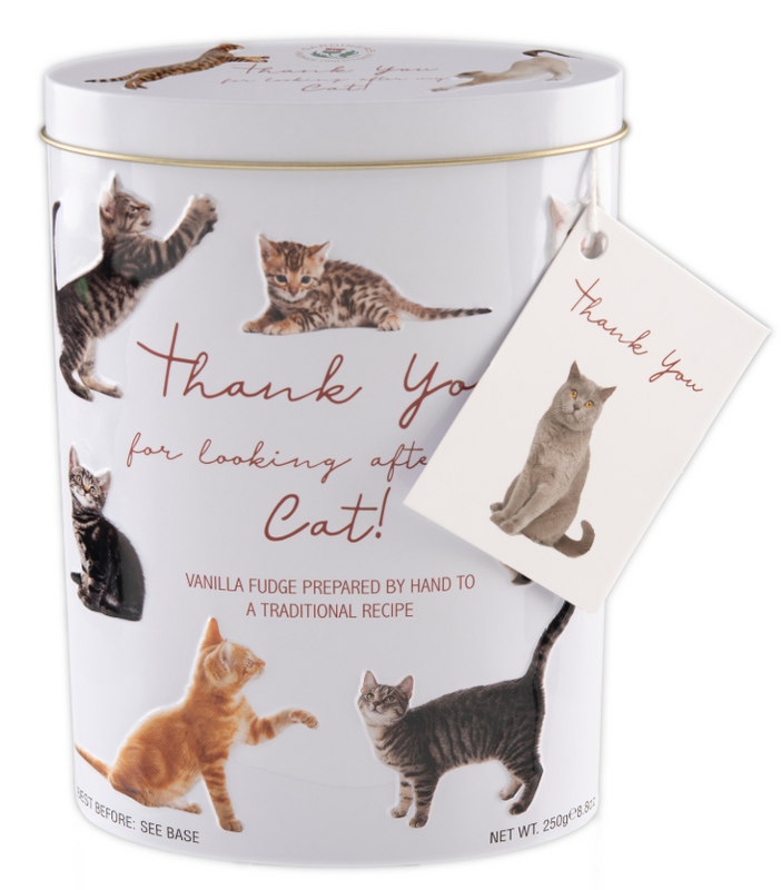 Beskrivning av Present till kattvakt, plåtburk med vaniljfudge