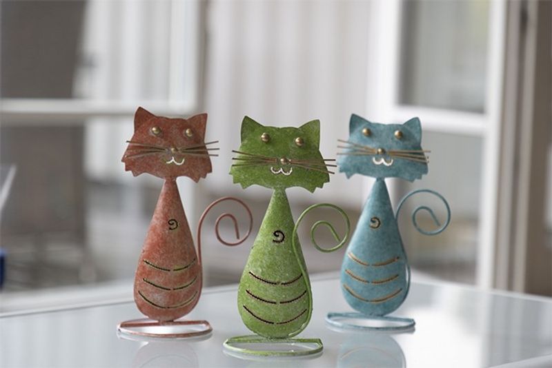 En riktigt fin kisse i hamrad plåt, 20 cm hög med kattmotiv.