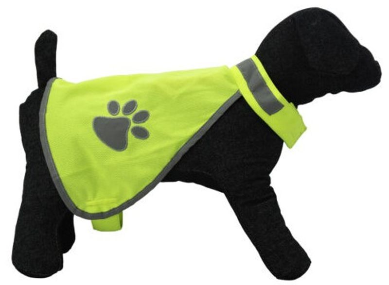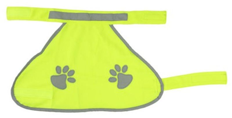 En fin liten reflexväst från märket Active Canis, neongul med reflexband. Kardborre runt bröst och hals.