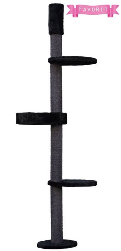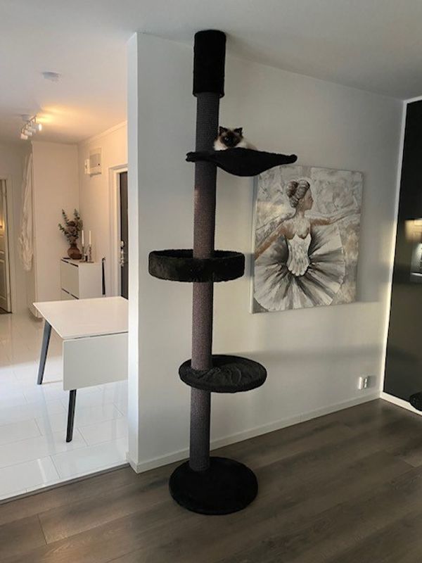 Rundetorn all Black är ett av de mest populära träden, smalt och högt och tar liten plats i hemmet. Med ett Rundetorn Black får du ett enkelt och stabilt klösträd, som uppskattas av alla katter.