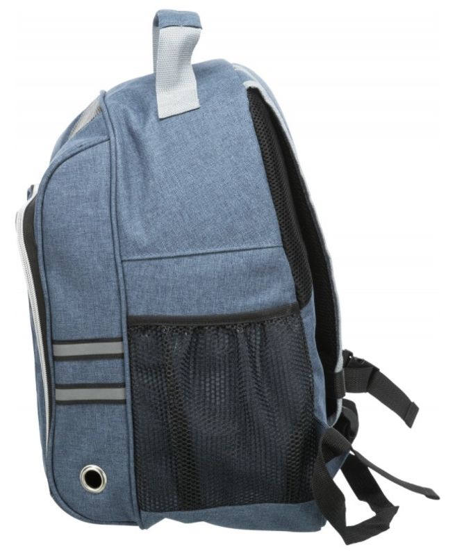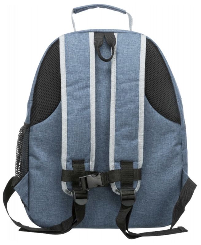 Meshficka på väskans sida för kattens småsaker (godis, koppel etc). Vadderad dyna i fårskinnsimitation i botten, med avtagbar klädsel. Ryggsäcken har flera nätsidor för god luftcirkulation inuti väskan.