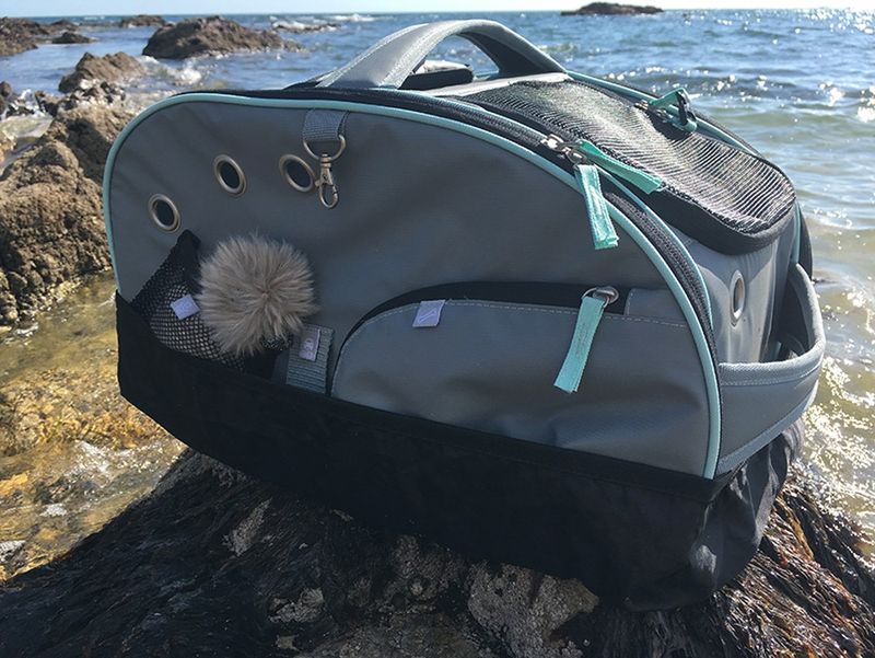 Transportväska med ett extra fiffigt click-lås på dragkedja framtill som gör att pillriga tassar inte kan öppna dragkedjan inifrån. Inifrån är väskan utrustad med en karbinhake för koppel (lämna dock adrig din katt fastspänd utan uppsikt).