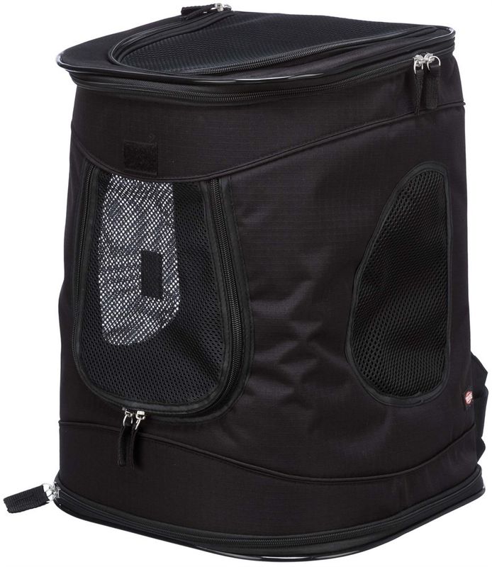 Väskan kan öppnas framtill och på ovansidan för katten och har ett kort koppel fäst på väskans insida så att katten inte kan hoppa ut om man vill ha väskan lite öppen. Vadderad dyna inuti med tvättbart överdrag.