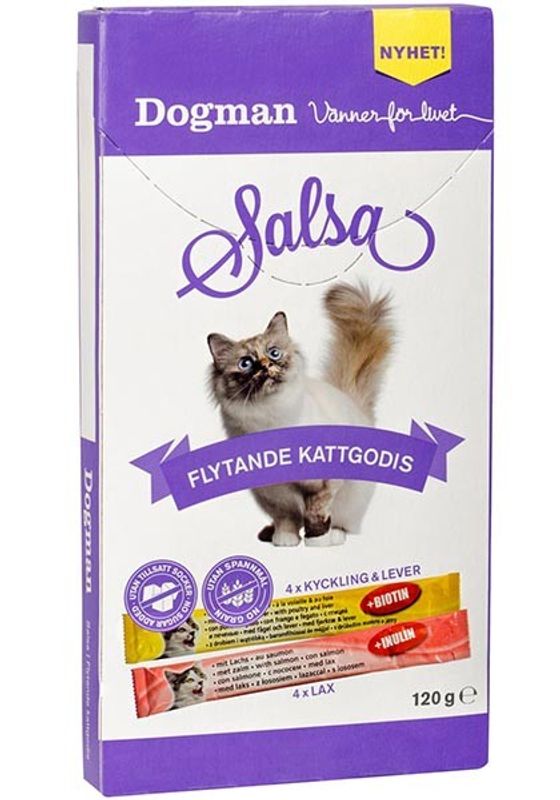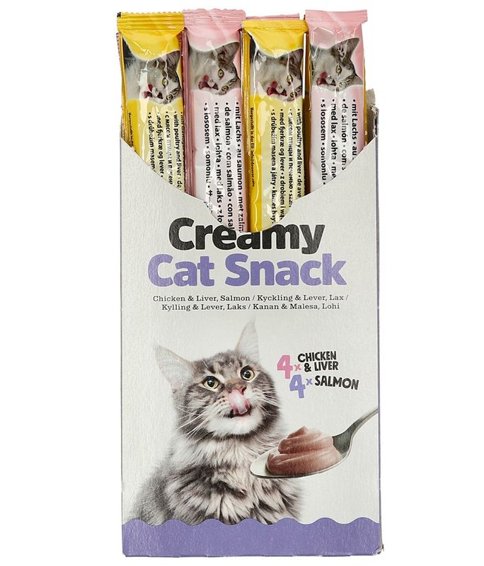 Flytande smakligt kattgodis helt utan tillsatt socker eller konstgjorda konserveringsmedel och färgämnen. Kläm direkt ur förpackningen och ge som belöning eller kanske för att höja smakligheten på kattens mat och på så sätt skapa en riktig festmåltid.