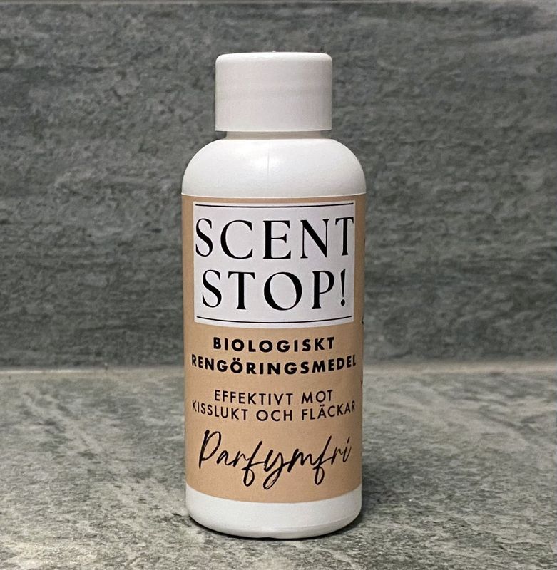 Scentstop är ett biologiskt rengöringsmedel som är effektivt mot kisslukt och fläckar. Det är helt naturligt, och består av odörätande mikroorganismer som aktiveras när de blandas med vatten. Mikroorganismerna arbetar sedan aktivt i upp till 5 dagar med att äta bakteriehärdar och dålig lukt, vilket gör Scentstop till ett omtyckt rengöringsmedel för exempelvis katt- (och hund-) kiss.