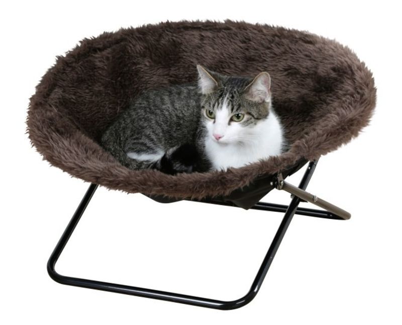De flesta katter sover gärna lite högre upp än golvnivå, detta gör att Sharon-bädden med sitt bruna lurviga tyg är perfekt för katter som gärna sover eller spanar lite högre upp.