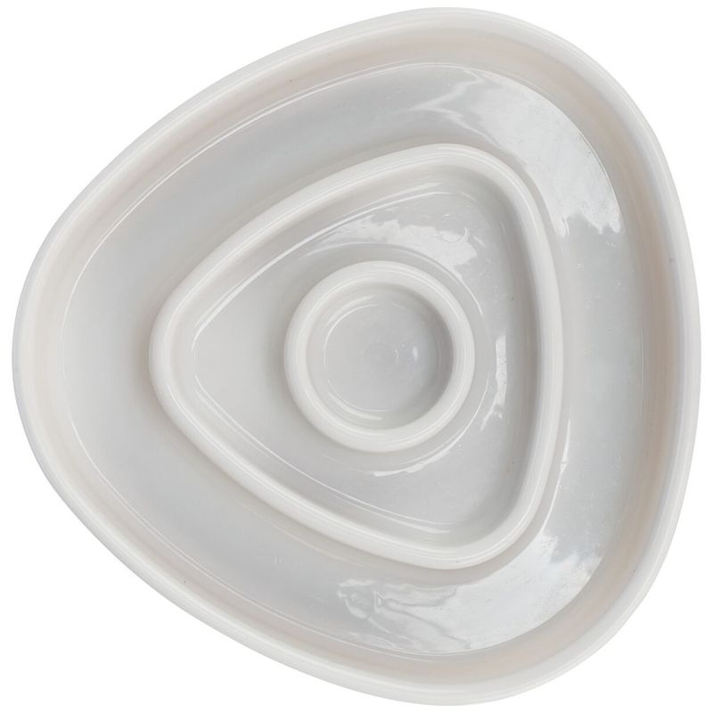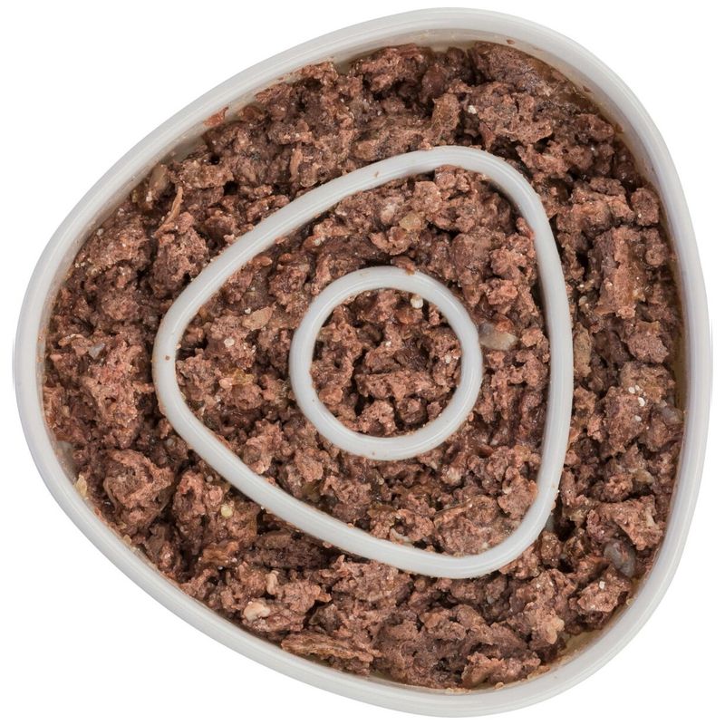 Fin och nätt kattmatskål i vit färg, en så kallad labyrintskål med kanter inuti skålen - dels håller kanterna fodret på plats och dels får din katt jobba lite för sin måltid. Katten kan använda sin mun för att äta t ex våtfoder i labyrinten, men den kan även använda mun och tassar för att pillra ut torrfoder ur matskålen.