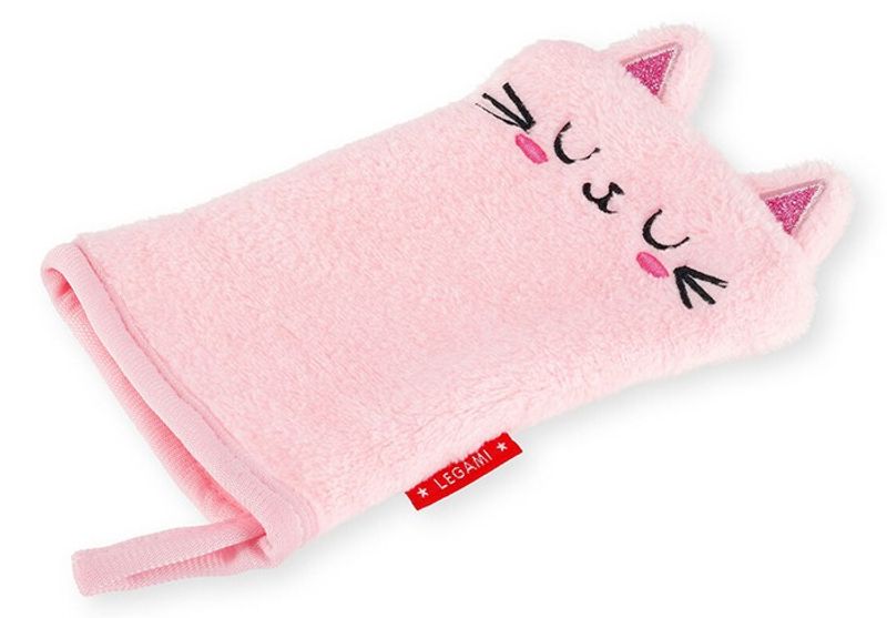 Goodbye Makeup Kitty Remover Glove. En mjuk, tvättbar, icke-allergiframkallande sminkborttagning - tyget tar försiktigt bort allt smink från ditt ansikte.
