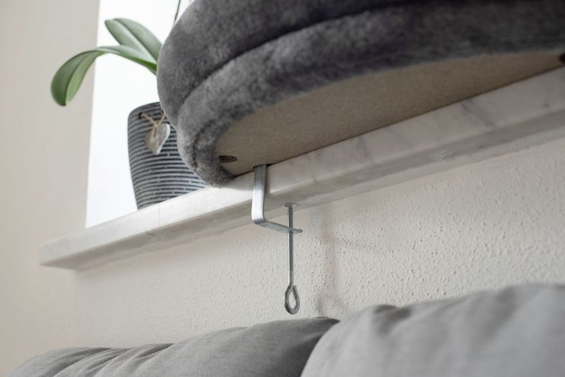 En mysig sovplats för din katt med grått plyschtyg, bädden skruvas fast mot ett befintligt fönsterbräde. Perfekt kattsäng för katter som gillar att sitta och spana ut genom fönstret. Bädden ger även lite isolering och extra värme om tassarna om man har dragiga fönster hemma eller kalla fönsterbrädor.