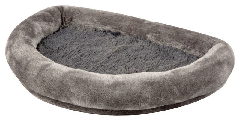 Grå färg och en liten upphöjd kant runtom bädden, tillverkad i 100% polyester med träskiva i botten. Avtagbart plyschtyg som kan handtvättas/skontvättas i 30 °C