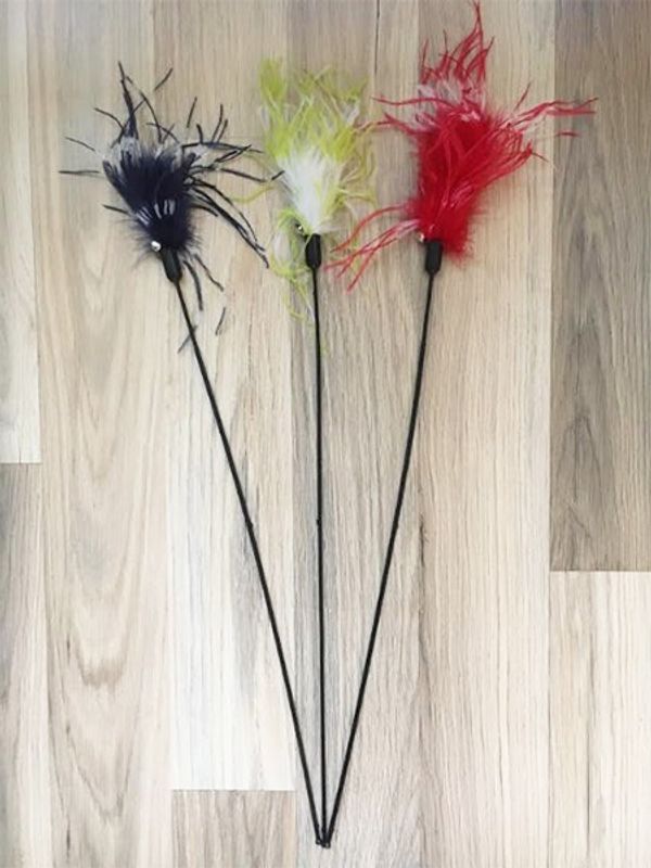 Klassisk kattleksak fjädervippa till din katt. Färgglada och mjuka fjädrar med fluff på pinne gör din katt riktigt leksugen.