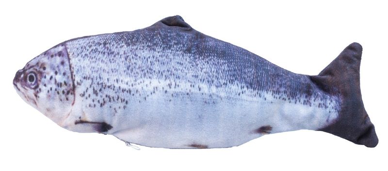 Stor mjukisfisk som sprattlar för att locka din katt till bus och brottningslek. Fisken har en rörelseaktiverad sensor som gör att fisken sprattlar vid beröring (den stoppar automatiskt efter 15 sekunder). Perfekt för din katt att brottas med, smyga på och göra "bunnykicks" med bakbenen.