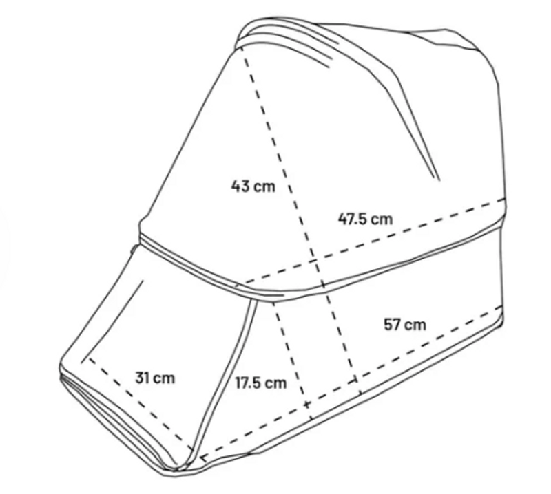 Storlek sulky: 89 x 37 x 87 cm (längd, bredd, höjd).