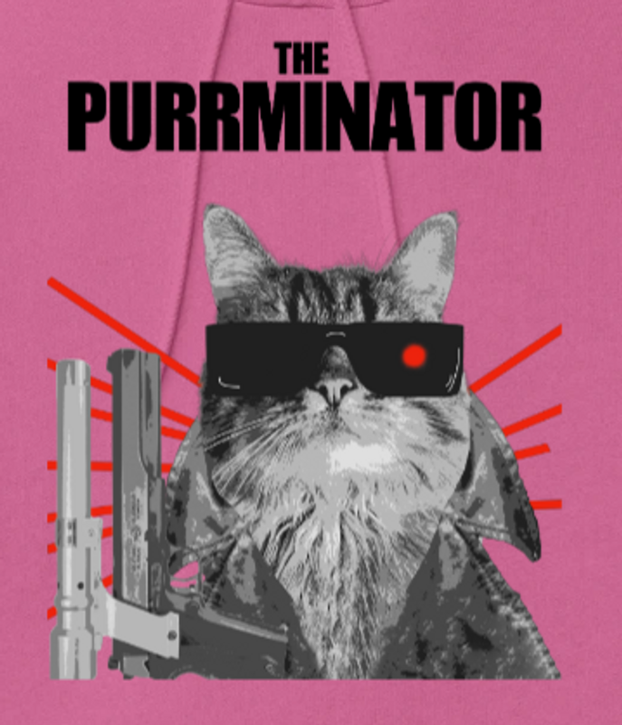 Beskrivning av Supercat Hoodie med tryck Purrminator rosa