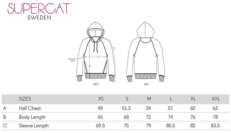 Superhärlig modell på huvtröjan med bra längd på tröjan och även på ärmarna, så den blir inte för kort om man själv är lite lång. Mät gärna upp din storlek med hjälp av måtten på produktbild nr 3, så att vi kan minimera antalet returer pga fel storlek.
