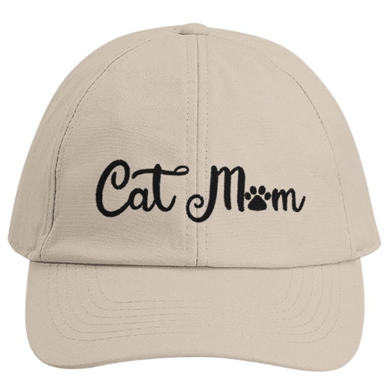 Beige keps med brodyr - Cat Mom. Fin keps att unna dig själv eller ge bort till någon av dina kattvänner.