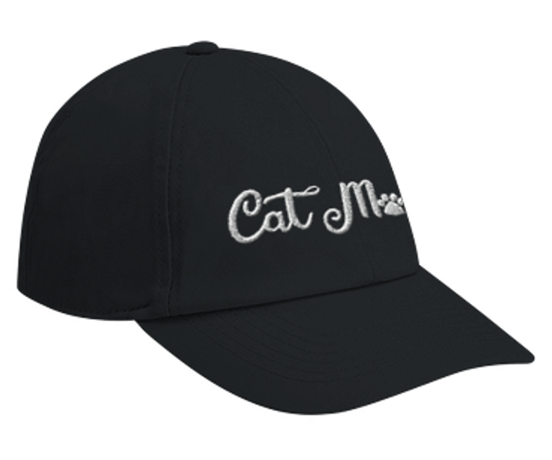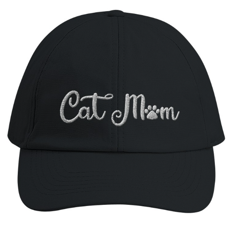 Är du en Cat Mom? Eller känner du någon? Den här svarta kepsen med den broderade texten "Cat Mom" är den perfekta gåvan till vilken kattmamma som helst.
