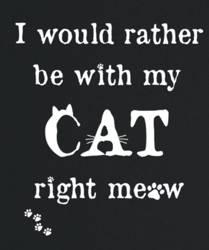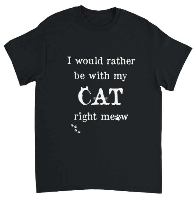"I would rather be with my CAT right meow" Känner du igen dig? Då passar den här t-shirten dig! Den har tryck på framsidan och är helt svart på baksidan, och är perfekt för en kattälskare. Sätt på dig den här tröjan innan du åker hemifrån, så vet din katt att du tänker på den hela dagen.