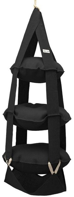 Den svarta Cat's Trapeze med 3 kuddar är en praktisk och funktionell lek-, sov- och klätterställning för din katt. En härligt svängande plats för din katt som dessutom är snygg i hemmet. The Cat's Trapeze Original är en holländsk design!