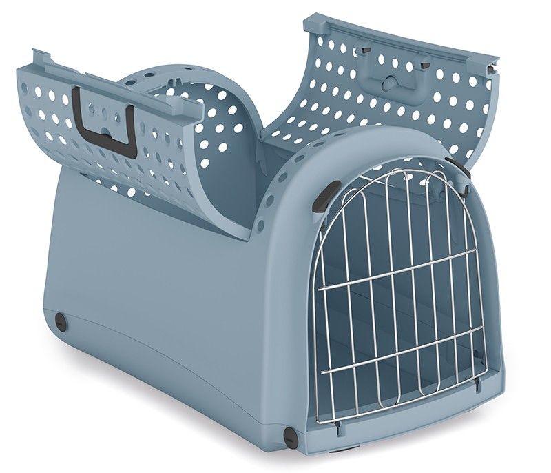 Transportbur, i en stålgrå (gråblå) färg, som har en bra storlek för din vuxna katt. Tranportbur Open kan man även öppna i taket såväl som framtill. Denna transportbur har en bra höjd så att även en lite större katt kan åka i den utan att känna sig trängd.