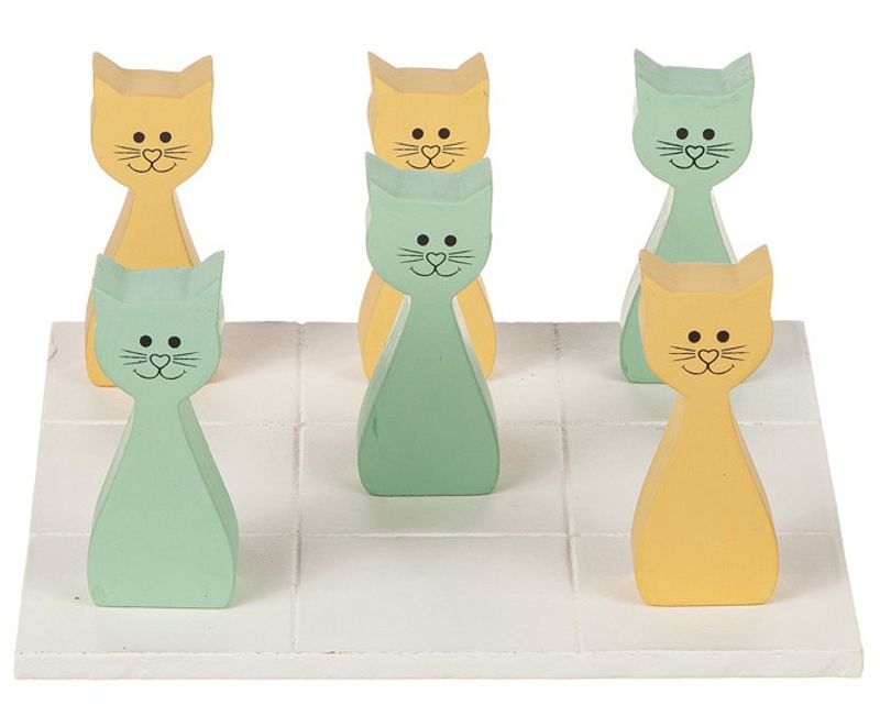 Träspel 3 katter i rad, på spelbräde