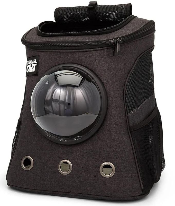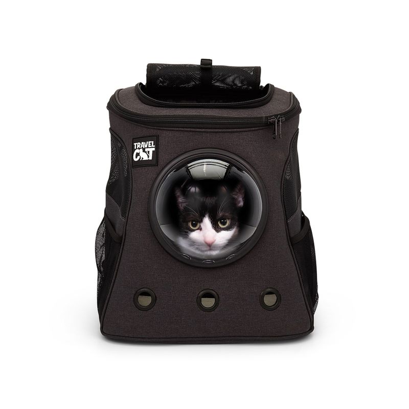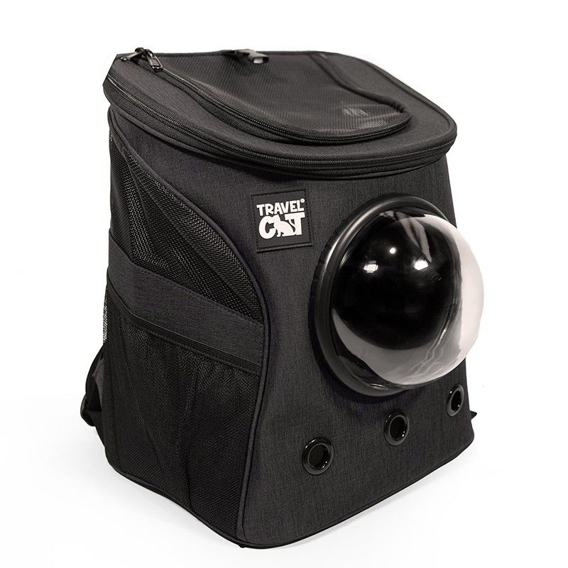 Ryggsäcken "The Fat Cat backpack" från Travel Cat är en stadig ryggsäck för katt eller liten hund som vill följa med sin familj på äventyr. Ryggsäcken har bra ventilation med lufthål i nederkanten, mesh på sidorna och i locket, samt möjligheten att välja mellan mesh på framsidan, eller den populära "bubblan" - som katten lättare kan se ut igenom!