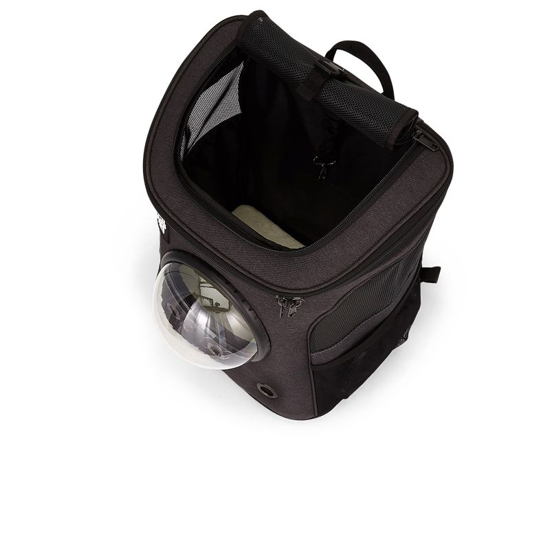 Den löstagbara botten är buntad och ger bra stadga till ryggsäcken. På insidan finns en säkerhetsrem att fästa i kattens sele, för att förhindra rymning - perfekt för den katt som föredrar att resa med locket upprullat för bästa möjliga utsikt.