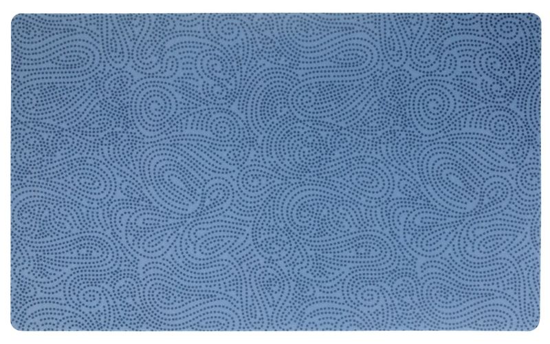 Ett absorberande underlägg från märket Drymate i blå färg med modernt mönster. Underlägget passar bra till matskålar och speciellt bra är det att ha under vattenskålar och vattenfontäner.
