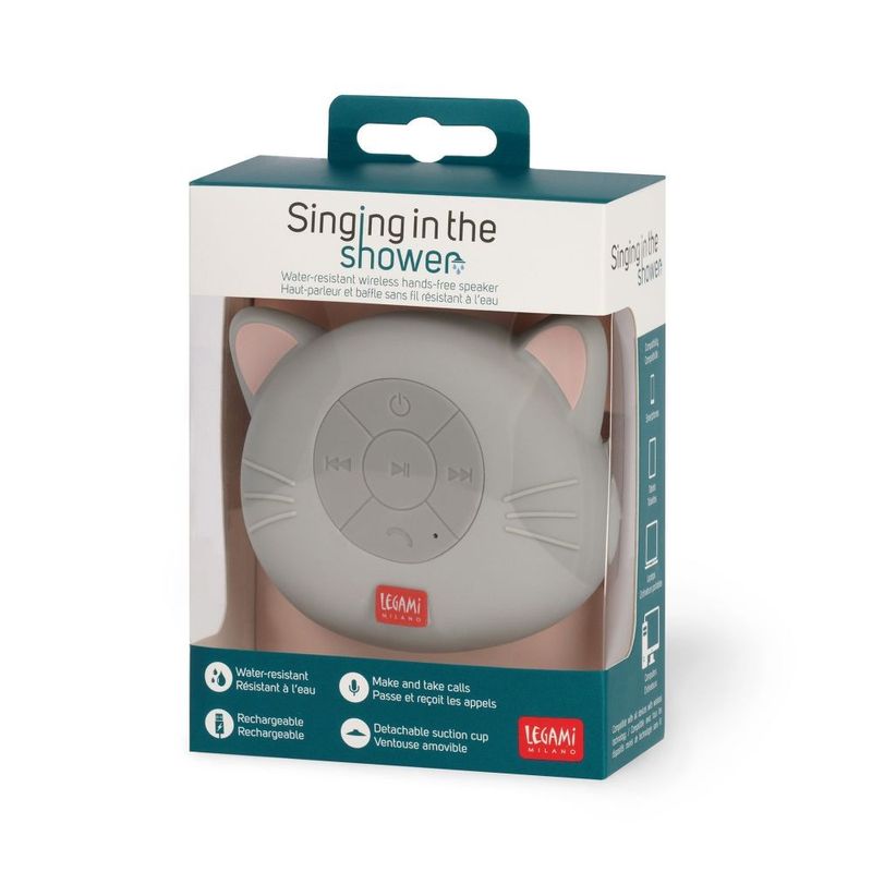 Vattentålig bluetooth® hands-free högtalare, som är perfekt att ha med sig på stranden eller vid poolen. Bäst av allt - du kan även använda den i duschen! Högtalaren har en sugpropp på baksidan, så att den går att sätta fast på duschväggen. Nu behöver du inte lägre sjunga a capella i duschen - ta med dig din favoritmusik, förslagsvis musiken till musikalen Cats?