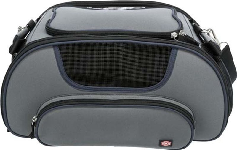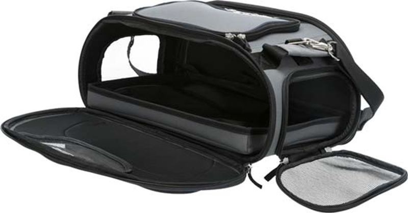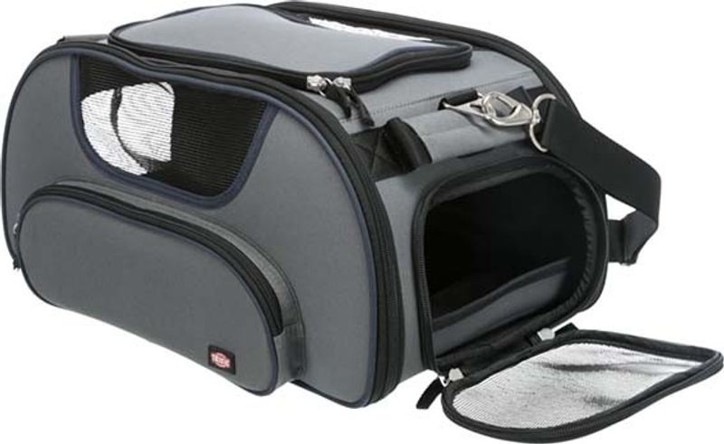 Transportväska från märket Trixie, tillverkad för ändamålet att flyga med katt eller liten hund inne i kabinen. Tillverkad i formbevarande EVA med polyester och väskan har en vattentät botten.